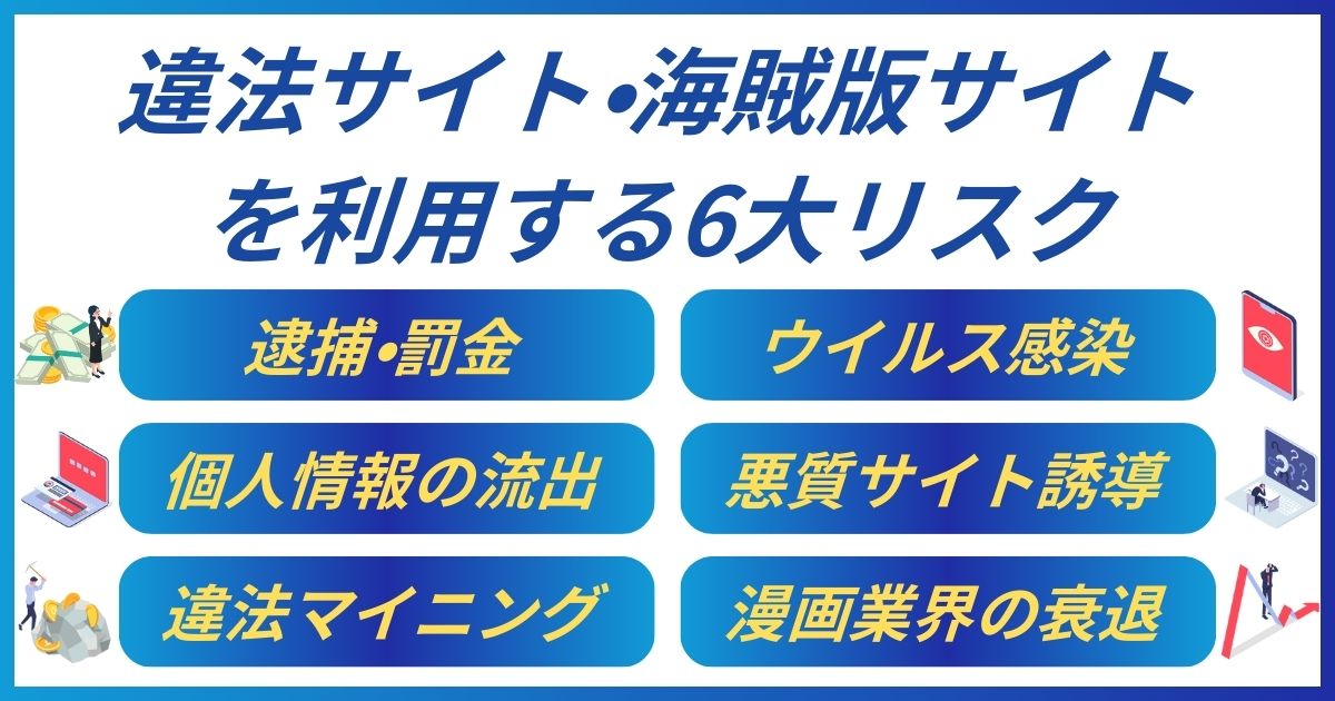 これらのサイトは法的リスクやウイルス感染の危険性が高く、利用者にとって深刻な問題を引き起こす可能性があります。
